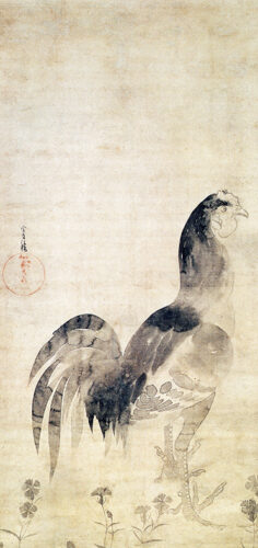 Born as the second son of a Kyoto-based kimono textile merchant, Ogata Sōken, Kōrin was introduced to many cultural pursuits during his youth as his affluent familial background permitted, such as the Noh theater, calligraphy, and painting. He was also trained in the Kanō School painting. Being familiar with the work by Kōetsu and Sōtatsu from early on, he aspired to restore his forerunners’ past glory.