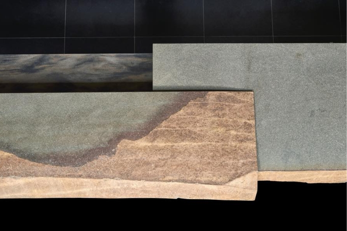 江戸城の普請にも使われた石で、茶銹が美しいため庭園に景石として置かれることも多く、研磨すると淡い緑がかった灰色の輝く石肌があらわれます。