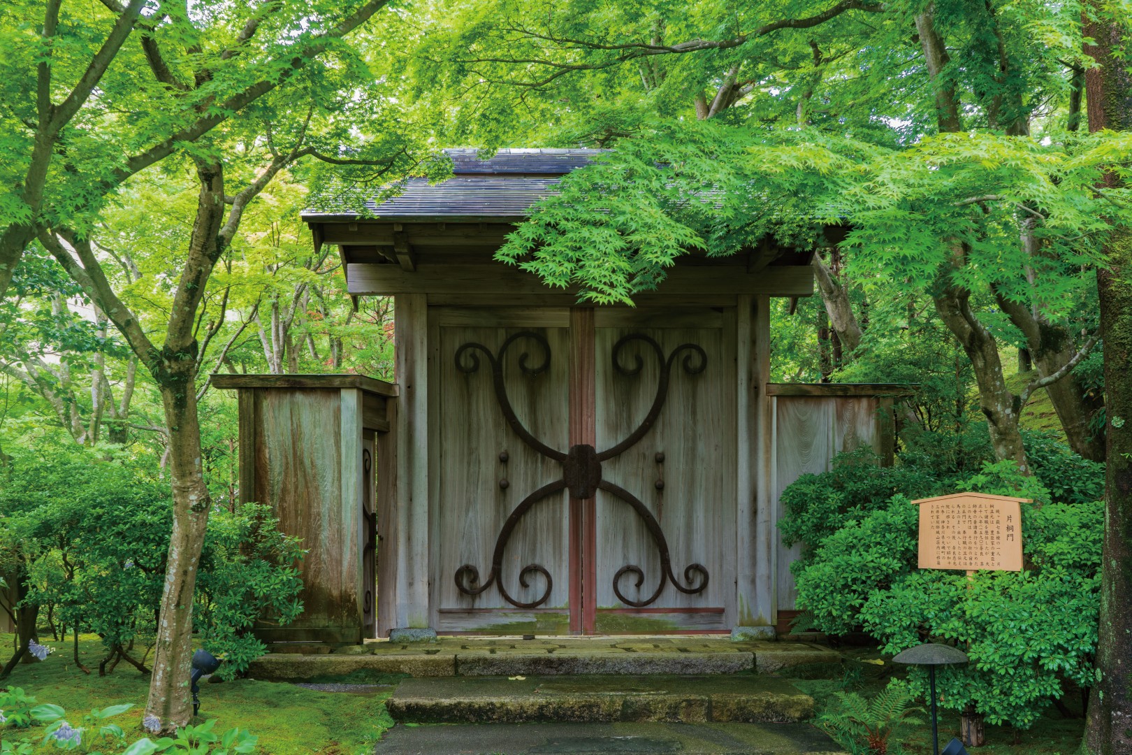 豊臣秀吉の重臣で、賤ヶ岳七本槍の一人として知られる片桐且元が奈良・薬師寺の普請奉行をつとめた際の宿舎の正門です。その後、奈良の慈光院、大磯町の旧三井家別邸城山荘を経て当館に移築しました。