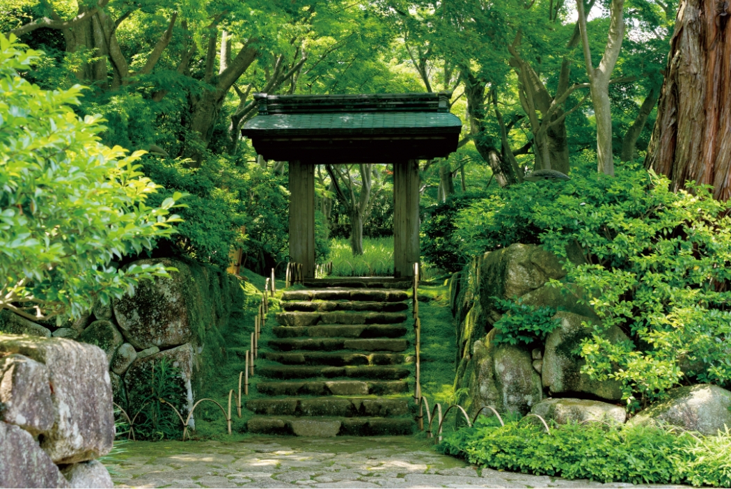 This teahouse in the sukiya style accommodates a modern table area next to a more traditional large room with a shoin-style display unit, creating an authentic and less formal setting for enjoying matcha tea. Under the copper-tiled roof, there are smaller rooms equipped with all the necessary utensils for a chanoyu session. The building was designed by the most prominent tea house architect Emori Nahiko (1902–1992), whose work includes the tea house of the Japanese embassy in Washington D.C
