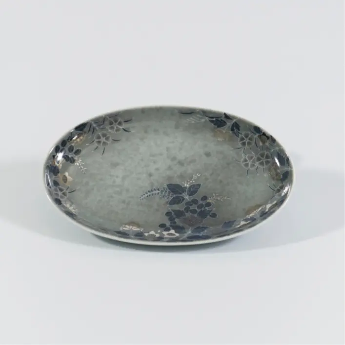 Plate with floral design in sumihajiki overglaze