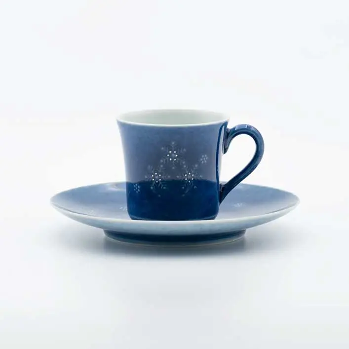 Coffee cup with snowflake design in sumihajiki overglaze