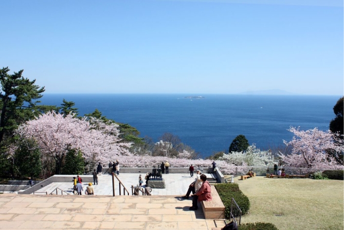 例年4月初旬には、ムア スクエアのソメイヨシノが開花し、満開の桜越しに相模湾を望むことができます。