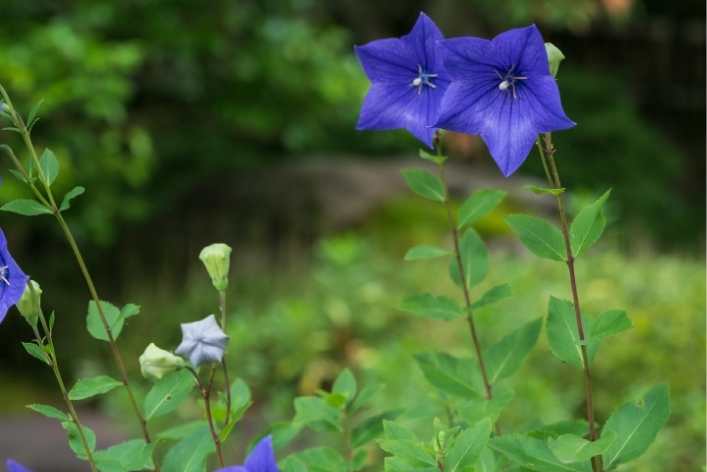 茶室「一白庵」の側に設えられた蹲は涼を呼び、可憐な姿を見せるギボウシやヤマユリ、桔梗なども楽しめます。