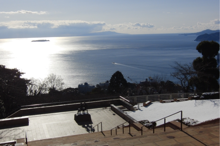 冬の晴れた日には、空気が澄みわたり、初島、伊豆大島が浮かぶ相模灘をはじめ、三浦半島、房総半島などの遠望まで楽しむことができます。
